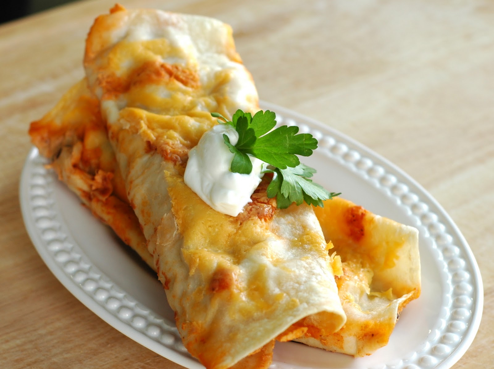 With warm chicken and veggies place in center of tortilla fold tortilla in thirds so fold in on the bottom.