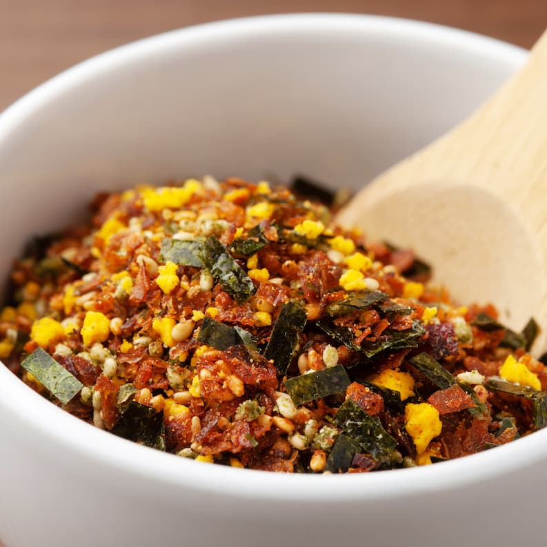 You can customize the recipe by adding other ingredients like dried bonito flakes, shiso, or green tea powder. Sprinkle furikake on top of rice, noodles, or vegetables for a flavorful and nutritious seasoning.