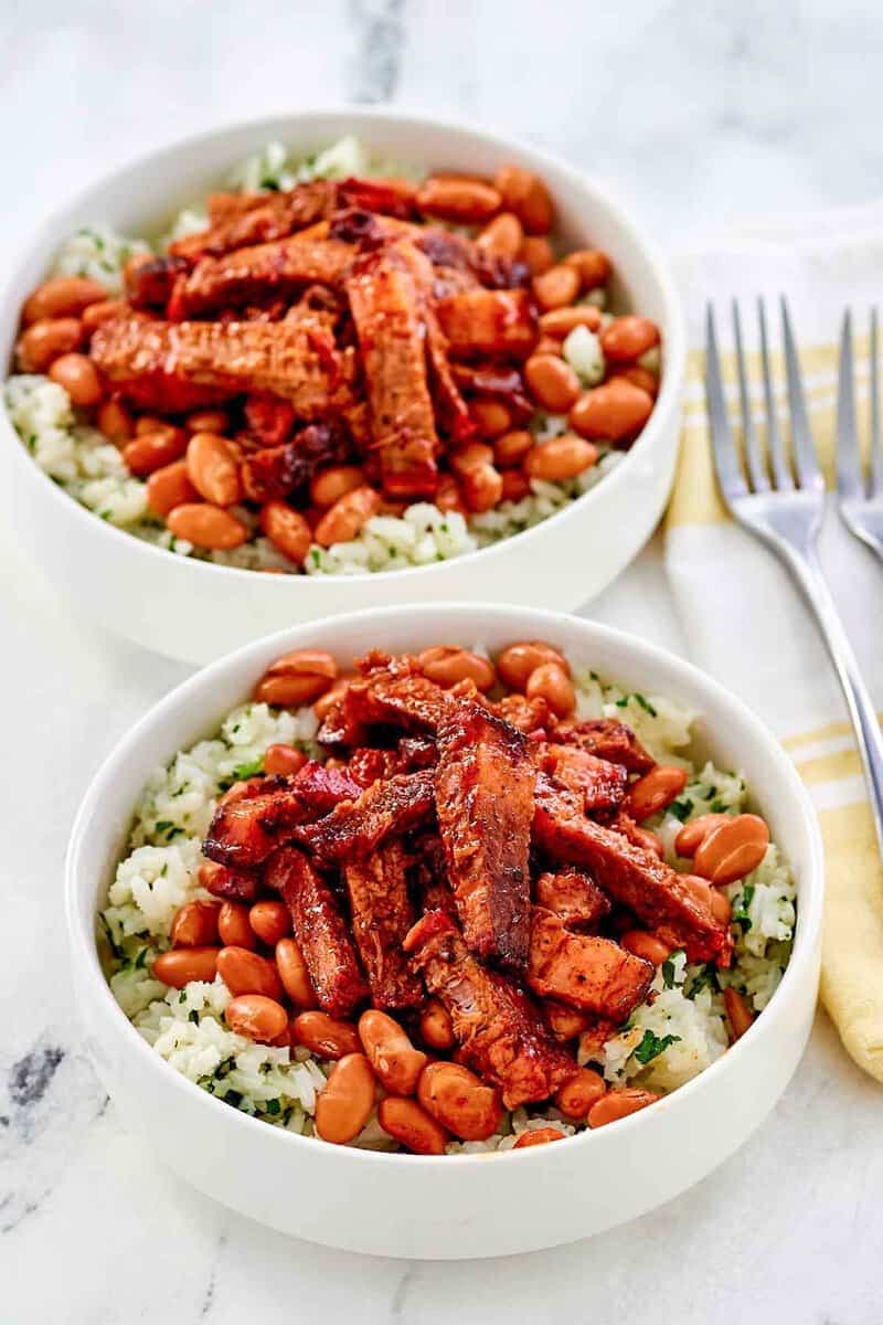 Chop brisket slices into 1/4-inch pieces and place in a bowl with just enough sauce to moisten the brisket.