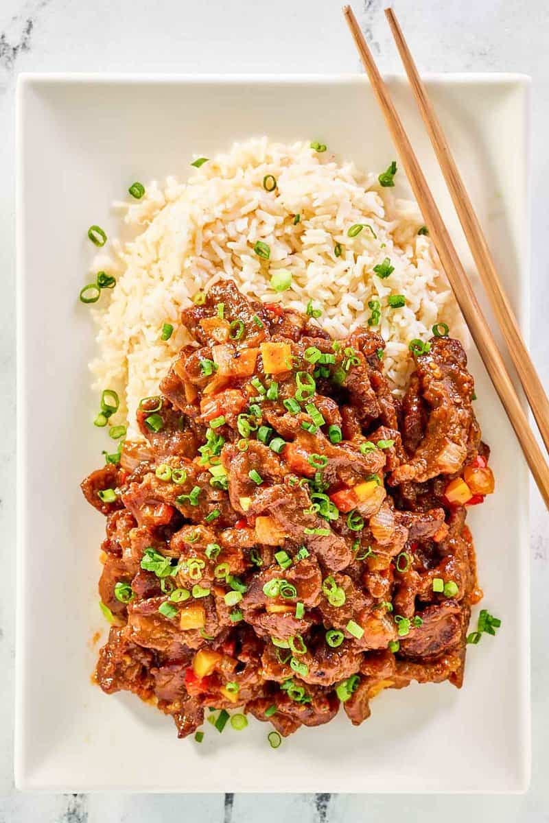 Place finished Beijing Beef into dish.