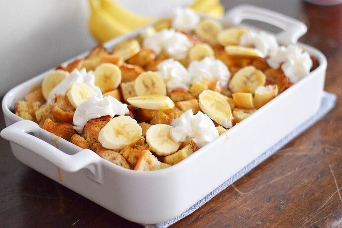 Bananas Foster is an epic dessert from New Orleans. Usually served via table-side flambé and completed with a generous helping of ice cream, it is a decadent and richly flavored course that is normally reserved for special occasions. But not to worry; we’ve created a french toast breakfast casserole version that you can easily make at home!
